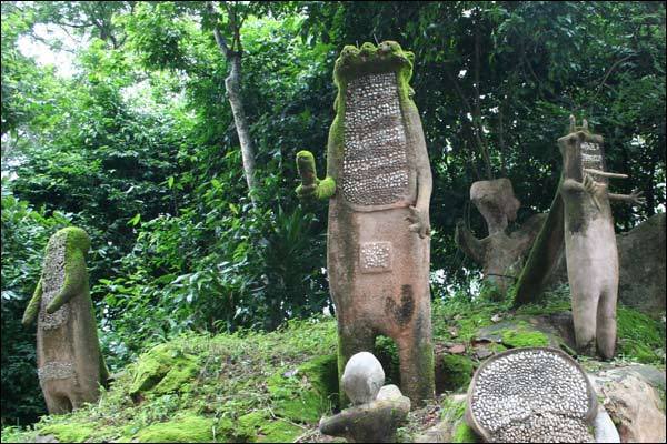 The greenery fresh leaves, the whistling forests, the seemingly swampy terrace, made the landscape to play host to some meshed palm fronds and images of some deities. These metaphors possessed bulging and dragooning eyes that seemed to focus directly on anyone approaching.